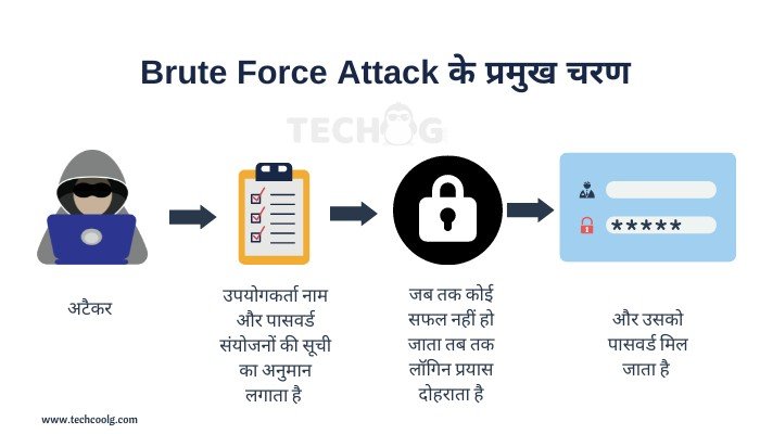 Brute Force Attack एक Hacking Attack है जिसमे Hacker सही पासवर्ड या पिन का पता लगाने के लिए Trial-and-error method का इस्तेमाल करते है। Hackers बार बार पासवर्ड या पिन के सभी Credentials को आजमाते है। कई मामलो में तो Brute Force Attack Automatic होता है जहा पर Software Credentials के साथ Automatic Login करने का काम करता है।
